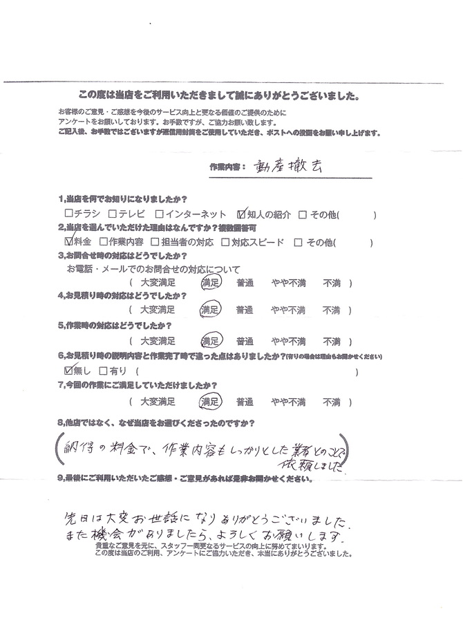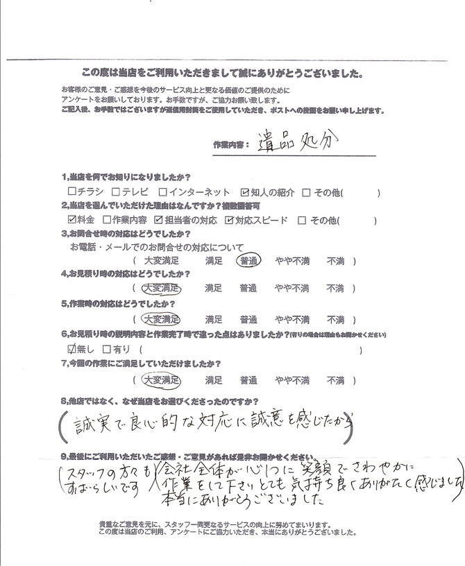 ※作業終了後のお客様アンケート結果