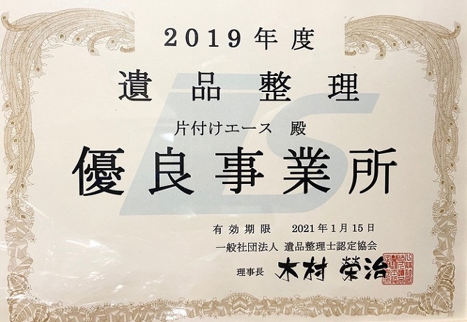 当社では全国30社に1社のみ選ばれる〈優良事業所〉に選ばれております。また、遺品整理協会から地区統括会員として選定されている便利屋業者となっております。